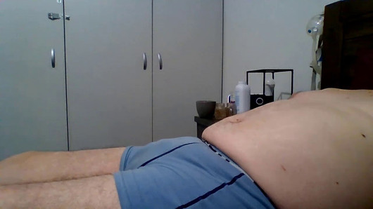 Пухлый мужик мастурбирует после долгого рабочего дня