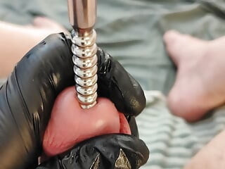 Смотри внимательно, как я растягиваю, открываю мою дырку члена с шатаным уретральным растяжителем